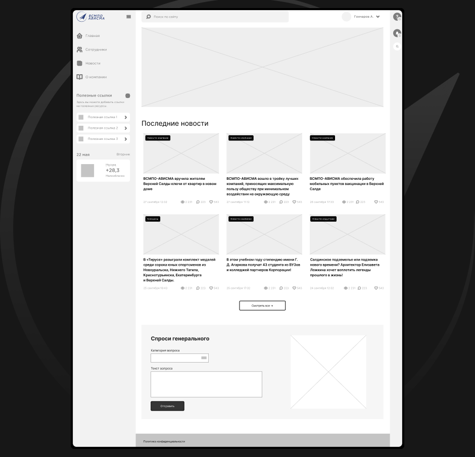 Проект ВСМПО-АВИСМА не стал исключением. Мы разработали более 15 высокоуровневых и детализированных прототипов. После их согласования перешли к полноценному дизайну.