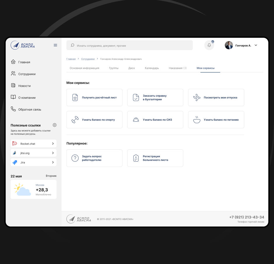 В разделе «Мои сервисы» сотрудники Корпорации могут самостоятельно решить различные кадровые вопросы. И это лишь часть функциональных страниц:
