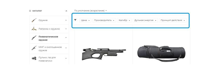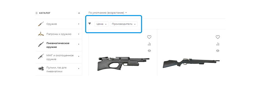 На huntergo.ru изначально присутствовал лишь фильтр по производителям.