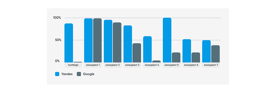До начала работ ресурс входил в ТОП-3 только по 26% запросов в Яндексе. Показатель существенно уступал конкурентам.
