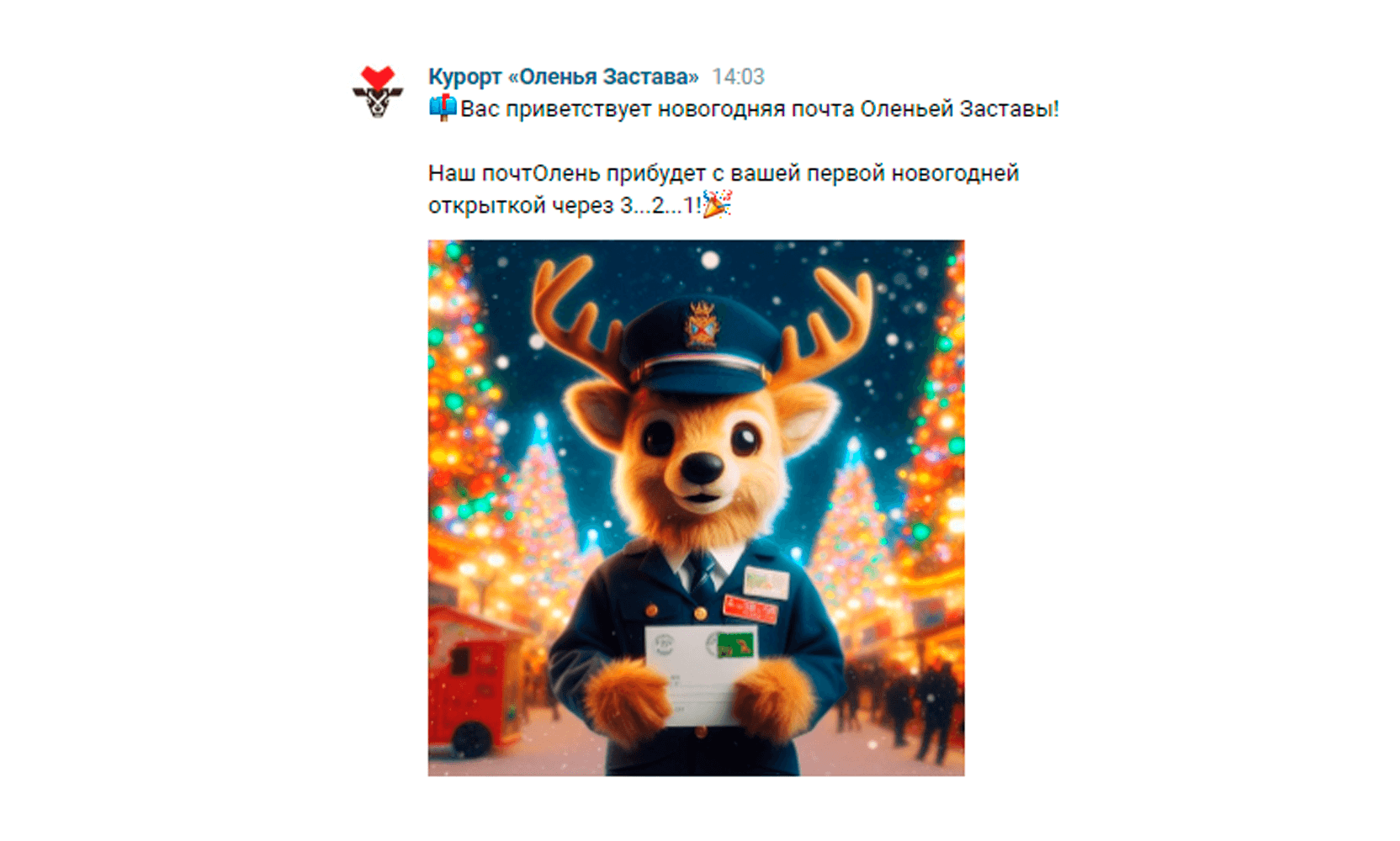 Первое сообщение с приветствием. (Люди уже от него были в восторге, и думали, что это открытка)