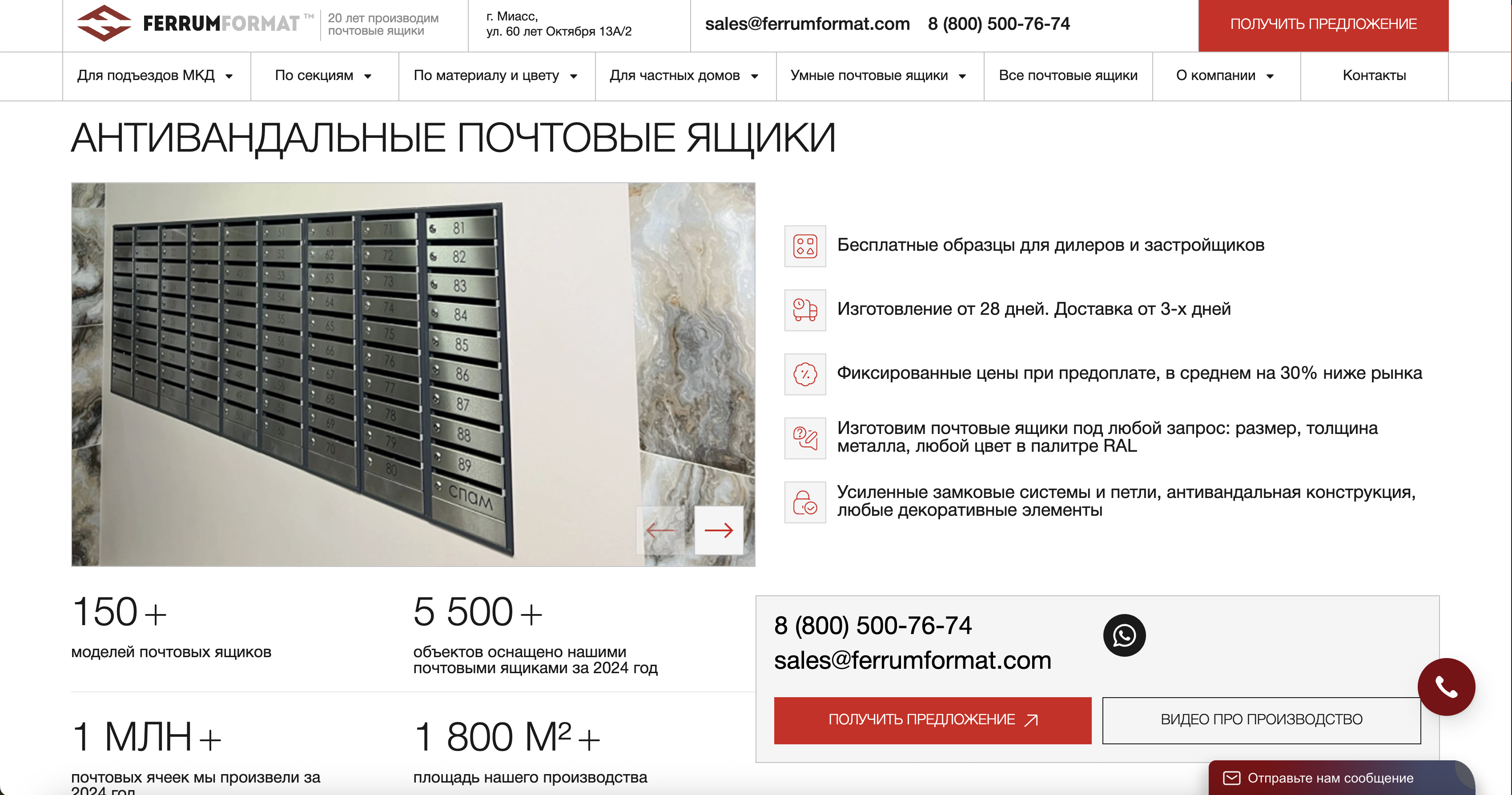 Если пользователь ищет антивандальные почтовые ящики, он попадает сразу на релевантную страницу. Не в общий каталог, как раньше.