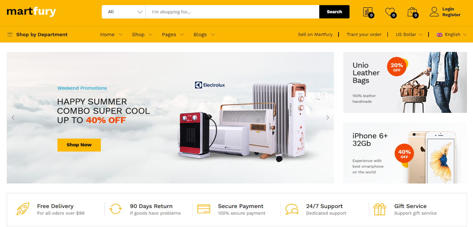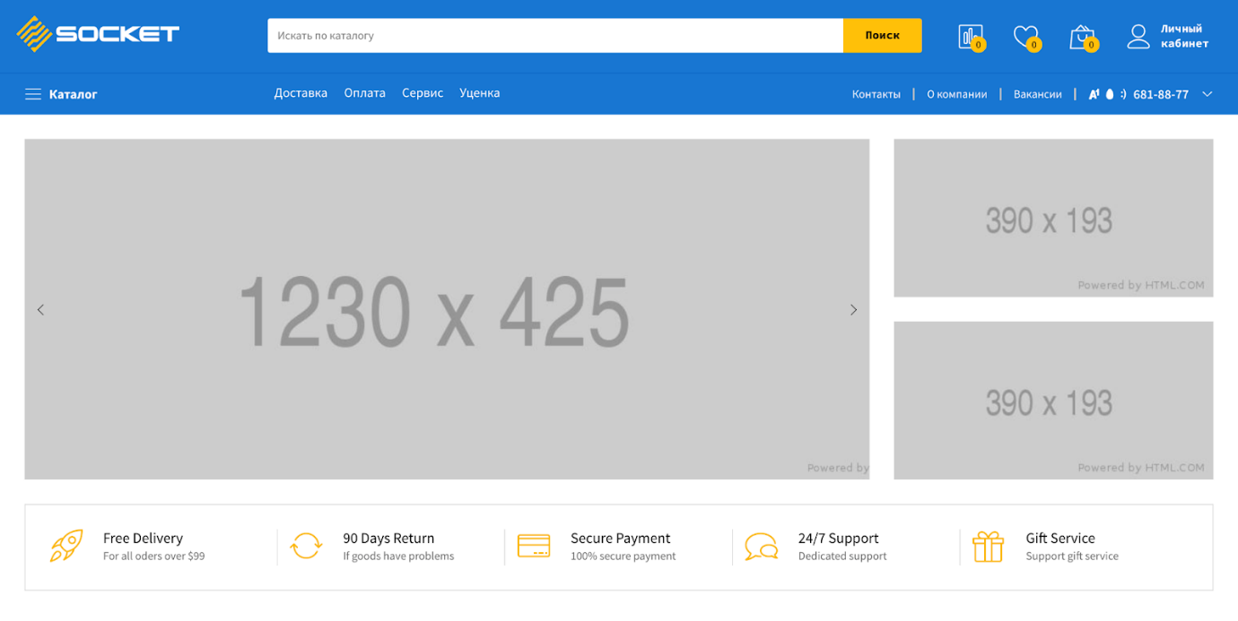 Интернет-гипермаркет был собран на Bitrix — платформе с большим сообществом и целой экосистемой готовых модулей и шаблонов. Это сразу открыло возможность сократить издержки и обойтись без дорогой уникальной разработки. Подходящую тему нашли на ThemeForest — крупнейшей онлайн-площадке по продаже шаблонов и тем для сайтов.