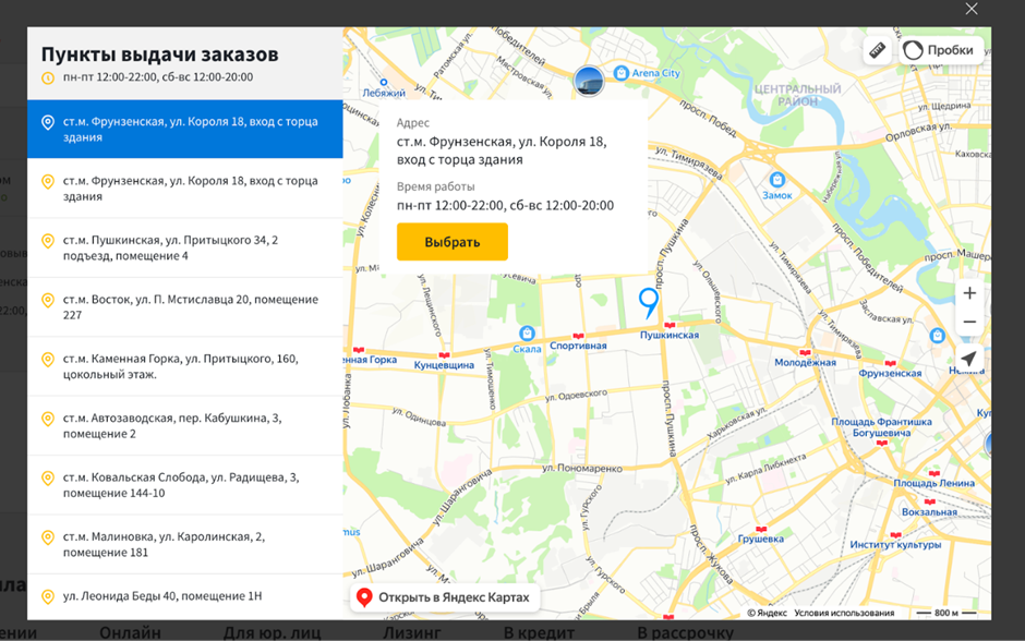 Если нужен самовывоз, открывается карта с пунктами выдачи, сделанная по современным стандартам. Больше людям не придется писать дополнительные комментарии к заказу, чтобы уточнить, где им удобнее забрать покупку.