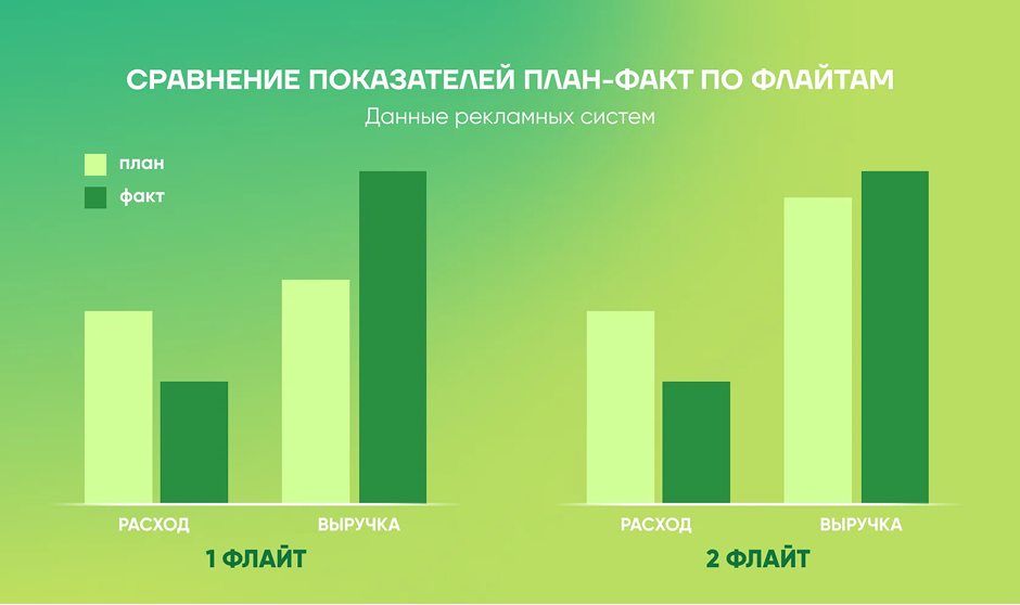 Первый флайт показал прирост выручки на 82% по отношению к предыдущему периоду. Да, именно так — 82%. Во втором флайте прирост составил 69%.