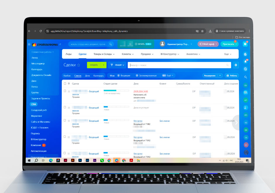Первым шагом стала регистрация портала Битрикс24 и разработка организационной структуры компании в системе. Мы определили иерархию, распределили роли и права сотрудников.