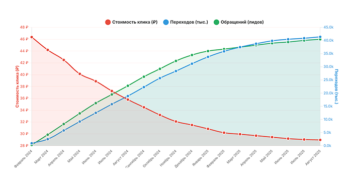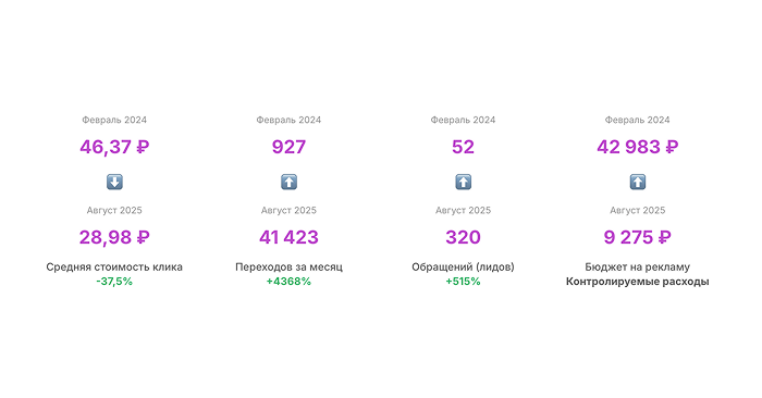Это позволило сравнивать эффективность разных целей на одном языке и принимать решения не «по ощущениям», а по цифрам. В результате предприниматель видит, сколько стоит лид и сколько стоит подписчик, и может планировать бюджет под задачи недели или сезона.