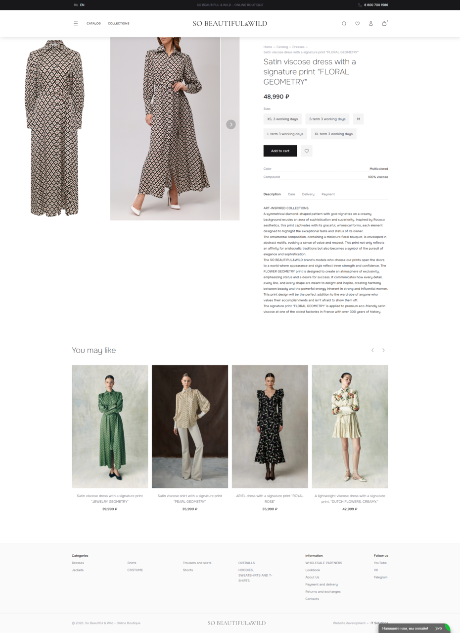 So Beautiful & Wild — это цифровой бутик, где каждая деталь, включая динамичный видеоконтент, работает на то, чтобы покупательница чувствовала себя именно такой — so beautiful&wild.