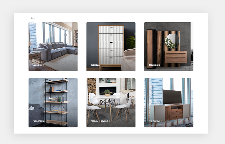 GET.ru, проект ведущей мебельной фабрики, сделал акцент именно на этой потребности рынка. Нашей задачей было предложить стратегию современного мебельного интернет-магазина, который объединил бы функциональность, продуманный дизайн и вдохновение, чтобы помочь покупателю GET.ru создать интерьер своей мечты.