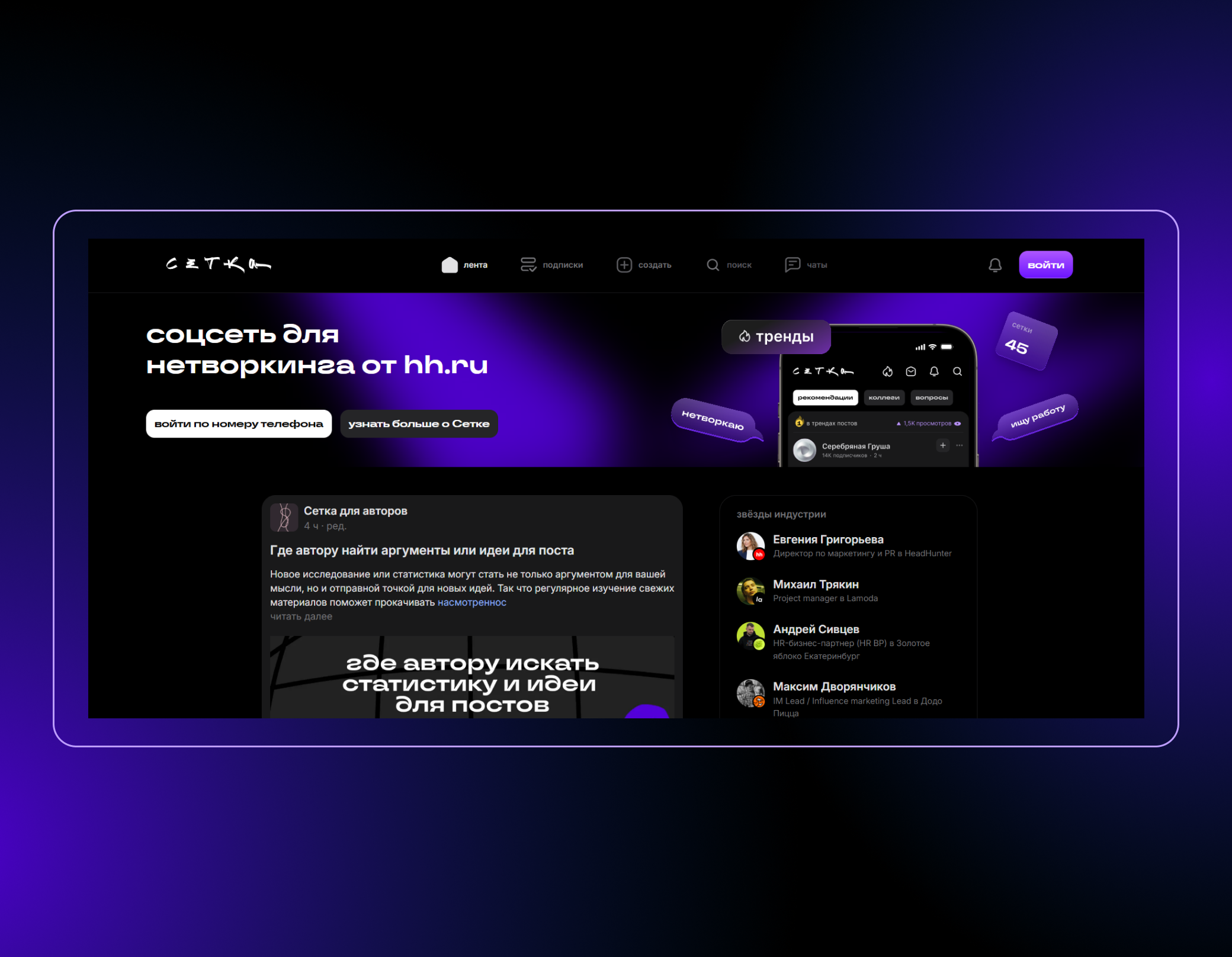 К нам в компанию SimbirSoft обратился клиент Сетка. Сетка — это профессиональная социальная сеть для нетворкинга от hh.ru, представленная в мобильном приложении и веб-версии, где можно строить профессиональные связи и открывать новые карьерные возможности. hh.ru — крупнейшая российская компания интернет-рекрутмента.