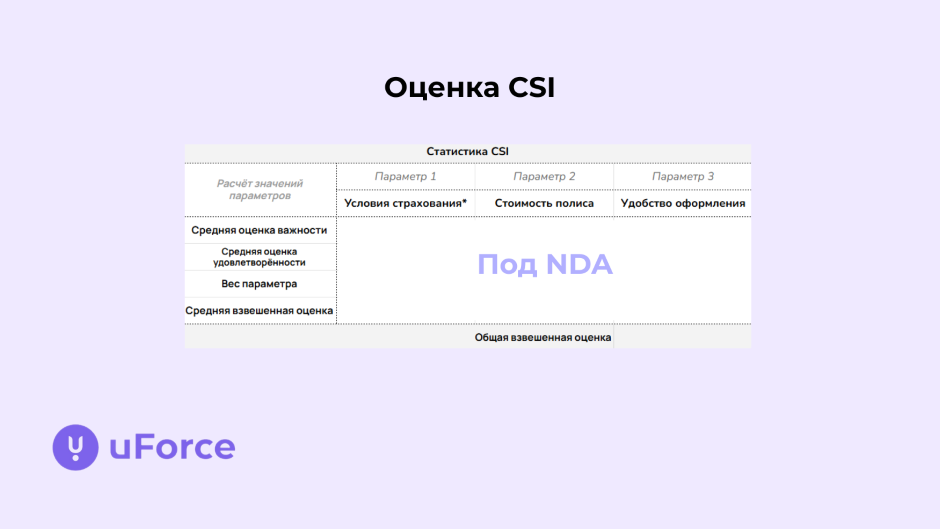 Мы анализировали результаты по каждому виду страхования и отслеживали динамику NPS и CSI в сравнительных таблицах.