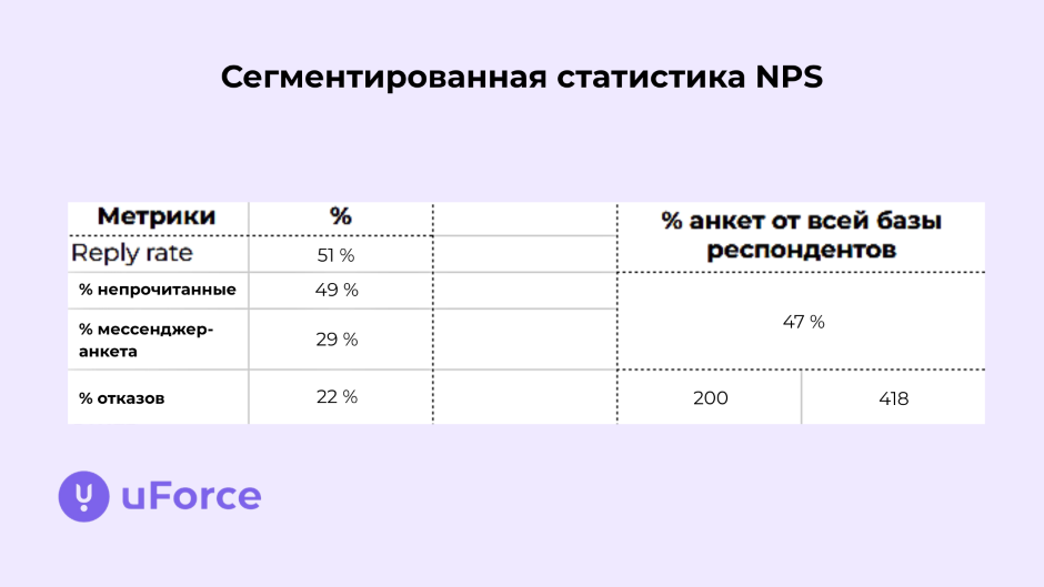Дополнительной сложностью стало обеспечение достаточной вовлечённости респондентов и контроль качества ответов: часть клиентов ограничивалась формальными комментариями, что снижало аналитическую ценность данных.