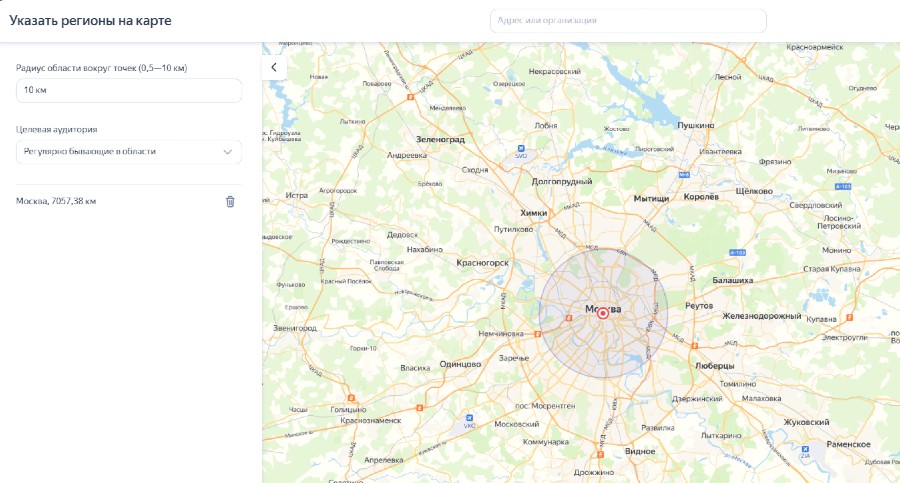 Поскольку автоломбард предполагает посещение офиса и передачу авто офлайн, мы отсекли аудиторию, которая находится слишком далеко. Ехать в ломбард с другого конца города маловероятно — люди выберут ближайший вариант.