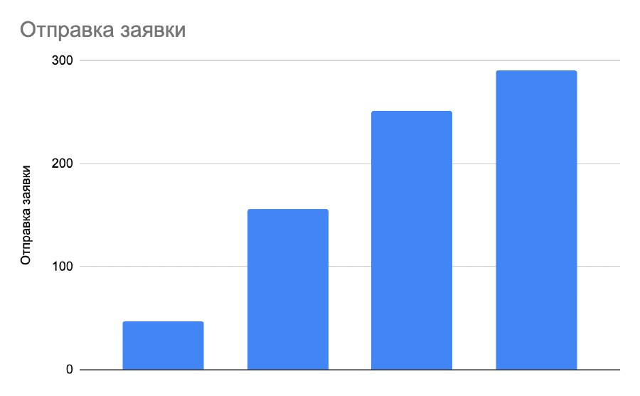 За период работы с января 2024 года количество заявок выросло в 6 раз. График отправки заявок демонстрирует стабильный восходящий тренд: от начальных показателей до почти 300 заявок за период.