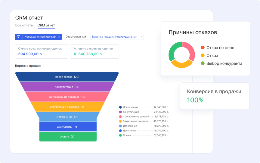 Первым этапом команда выстроила воронку продаж под специфику юридических услуг. В нее включили стадии:
