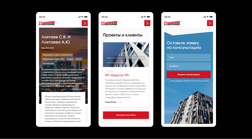 Юридический сайт должен транслировать уверенность. Мы искали решение, которое свяжет юриспруденцию и недвижимость.