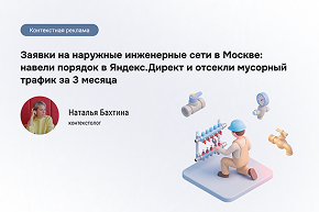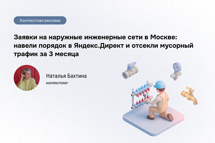 «В этом проекте главная сложность была не "накрутить кликов", а отделить целевые запросы на инженерные сети от случайной аудитории из РСЯ. Решили это через чистку площадок, корректировки по аудиториям и настройку нормальных целей, чтобы оптимизация шла по заявкам, а не по кликам». Наталья - контекстолог