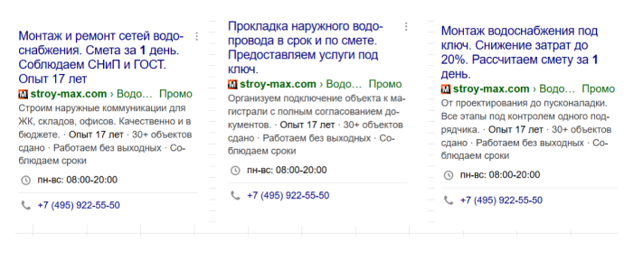 Текстовые объявления для поиска с УТП