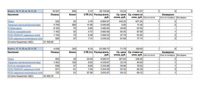 Стратегия была ориентирована на получение кликов (максимум кликов), что в большинстве случаев приводит к росту некачественного трафика и не дает стабильных заявок. В одной кампании были смешаны Поиск и РСЯ, из-за чего сложнее управлять бюджетом, анализировать эффективность и оптимизировать размещение.