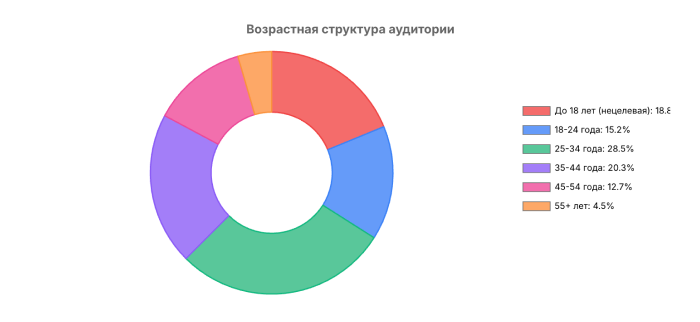 Доля аудитории до 18 лет: 18,8%, исключили как нецелевую
