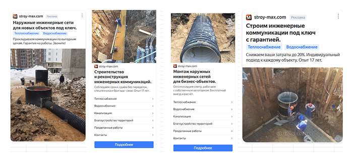 Креативы по услуге ремонт инженерных сетей