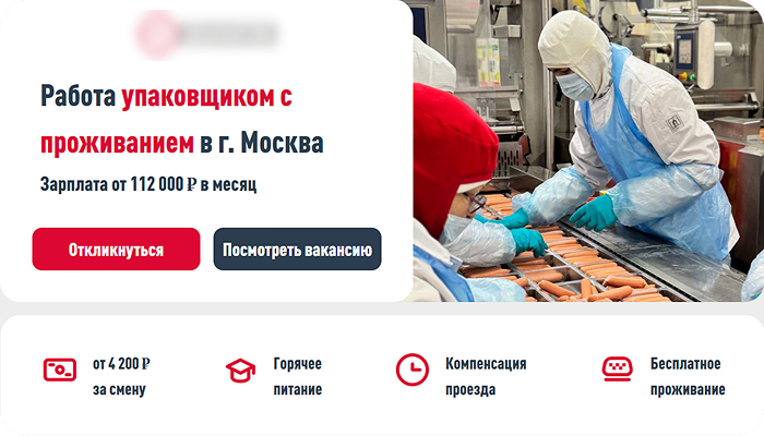 «Требуются упаковщики. От 112 000?/месяц на руки»