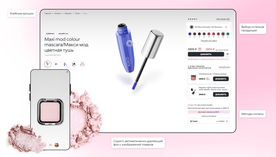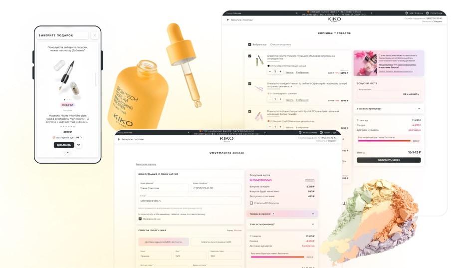 Некоторые интерфейсные решения и паттерны из итальянской версии были переработаны, чтобы соответствовать привычкам локальных пользователей и особенностям российского e-commerce, сохранив при этом фирменный стиль KIKO Milano.