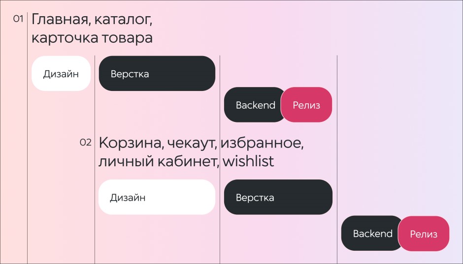 Чтобы сохранить непрерывность продаж и ускорить процесс обновления, редизайн решили проводить в два этапа. Такой подход позволил плавно внедрять новый дизайн без простоев: магазин оставался доступен для пользователей, заказы принимались в штатном режиме, а релизы проходили последовательно и без задержек.
