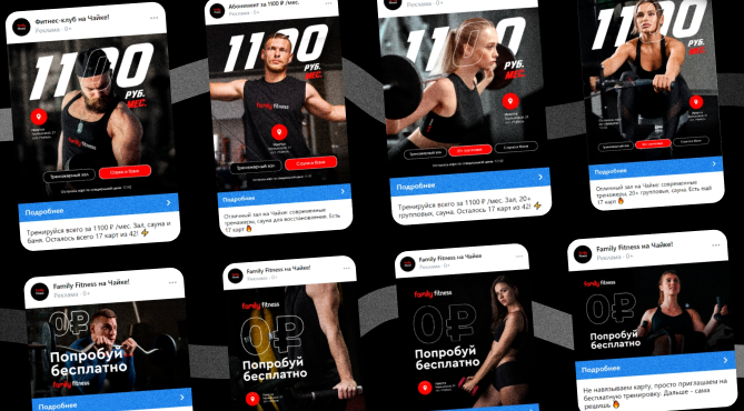 Главный инсайт этой кампании: на гиперлокальном гео узкие аудитории выгорают мгновенно. Спасает только широкая настройка в связке с очень точным визуальным оффером (акцент на тренажеры для мужчин и на групповые программы для женщин). Мы не стали ждать идеальных студийных промороликов, а быстро собрали креативы из простых подсъемок на телефон, докрутив их через ИИ. В итоге — потолок прошлых агентств пробит, а цена лида оказалась в рамках KPI.