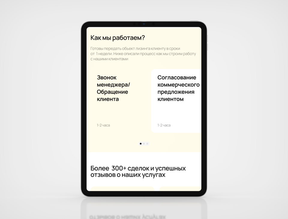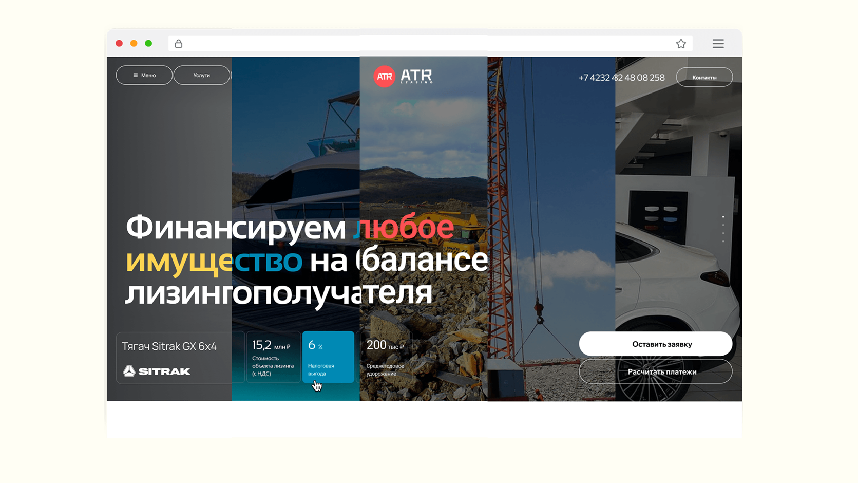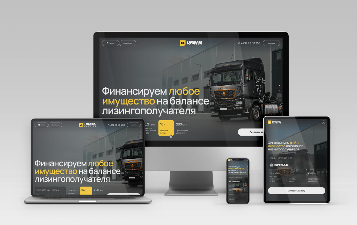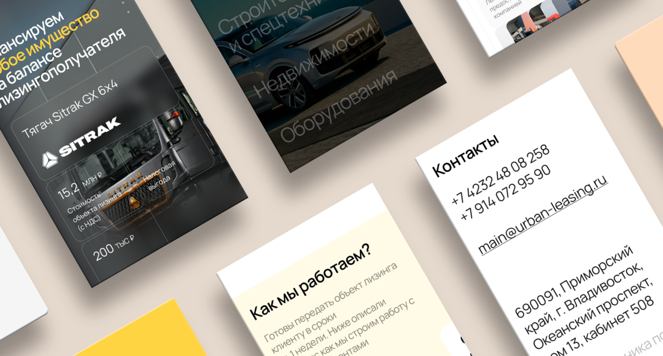 - Подбор контента, типографики и цветовой палитры, которые работают на широкий спектр активов (от грузовой техники до яхт)