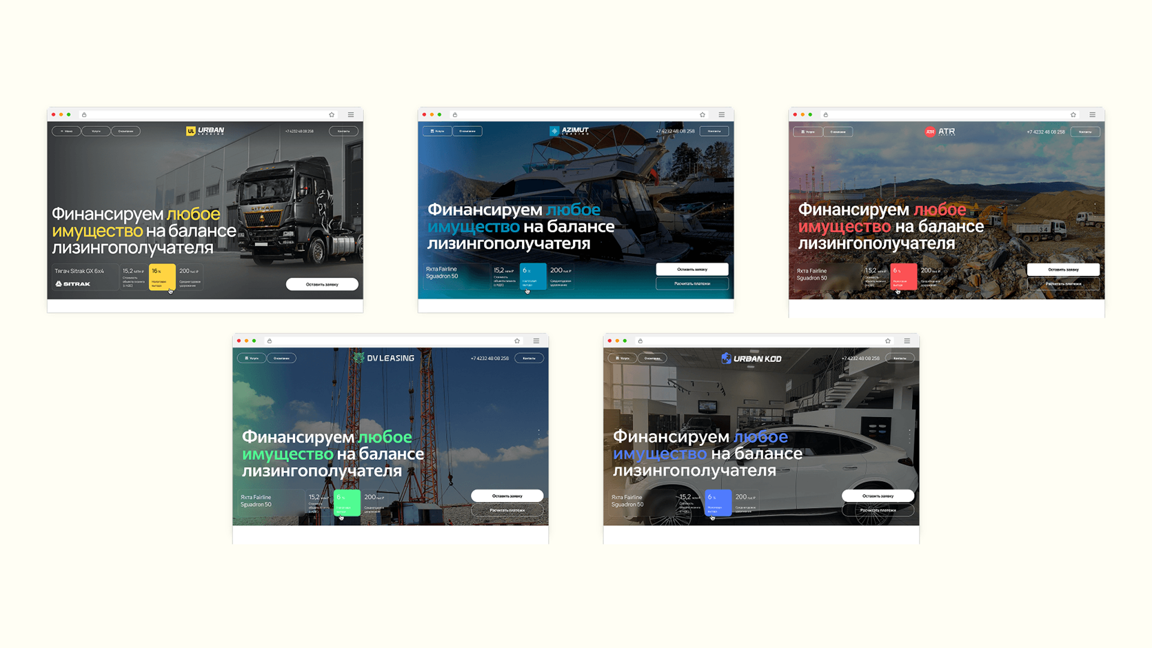 - Подбор контента, типографики и цветовой палитры, которые работают на широкий спектр активов (от грузовой техники до яхт)