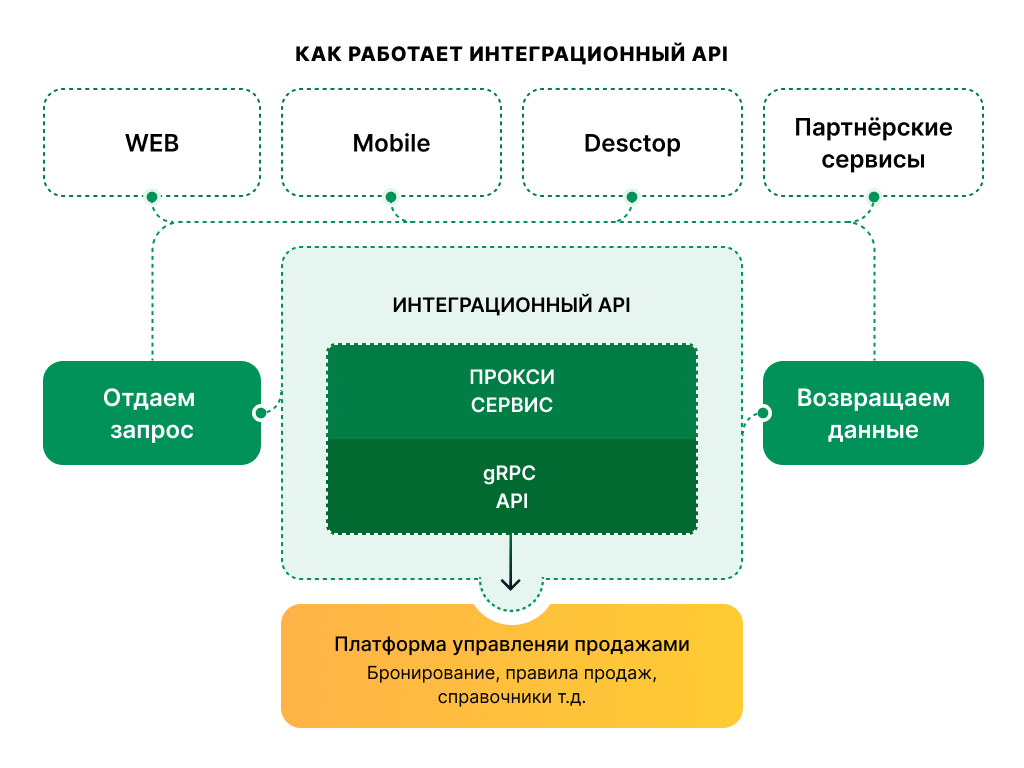 Проблемы начались в момент, когда компания стала активно развивать цифровые продукты. Появились мобильные приложения, веб-интерфейсы, интеграции с партнёрами и внешними сервисами. Но билетное ядро было фактически закрыто для всего этого: работать с ним можно было только из Java-приложений и по внутренним правилам системы.