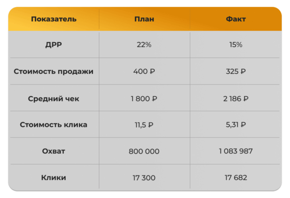 3. Комплексный подход к конверсии.Внешняя реклама приводила трафик, но продавала карточка товара. Предстартовый аудит и правки контента (видео, инфографика, фото) повысили доверие к бренду внутри маркетплейса. Профессиональное оформление обеспечило высокую конверсию из перехода в покупку, что напрямую повлияло на стоимость продажи.
