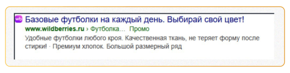 Поисковая кампания: ловили тех, кто ищет товар прямо сейчас.Это стала основой всей стратегии. Для неё мы собрали семантическое ядро по ключевым запросам, связанным с женской одеждой из премиум-хлопка: «футболка женская плотный хлопок», «лонгслив женский износостойкий», «платье-футболка премиум».Тексты объявлений подготовили с акцентом на УТП бренда. Ссылки вели напрямую на карточки товаров-локомотивов на Wildberries, чтобы пользователь сразу попадал на страницу покупки.