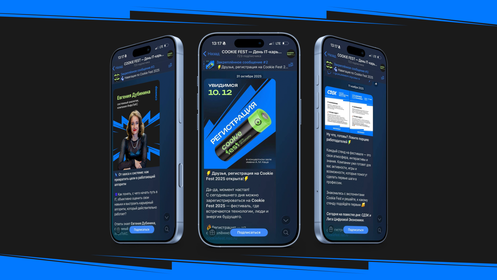 Мы сформулировали метафору: Cookie Fest — стартовый заряд для карьеры. Айдентика должна не рассказывать про IT, а передавать ощущение начала движения.