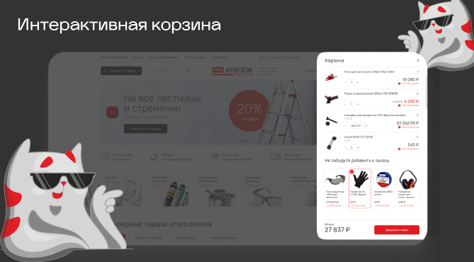 Для эмоционального вовлечения добавили фирменного персонажа — стилизованного кота, которого разместили: