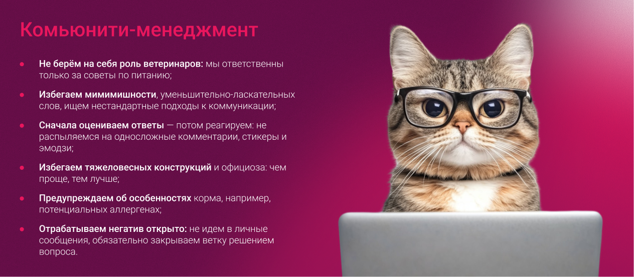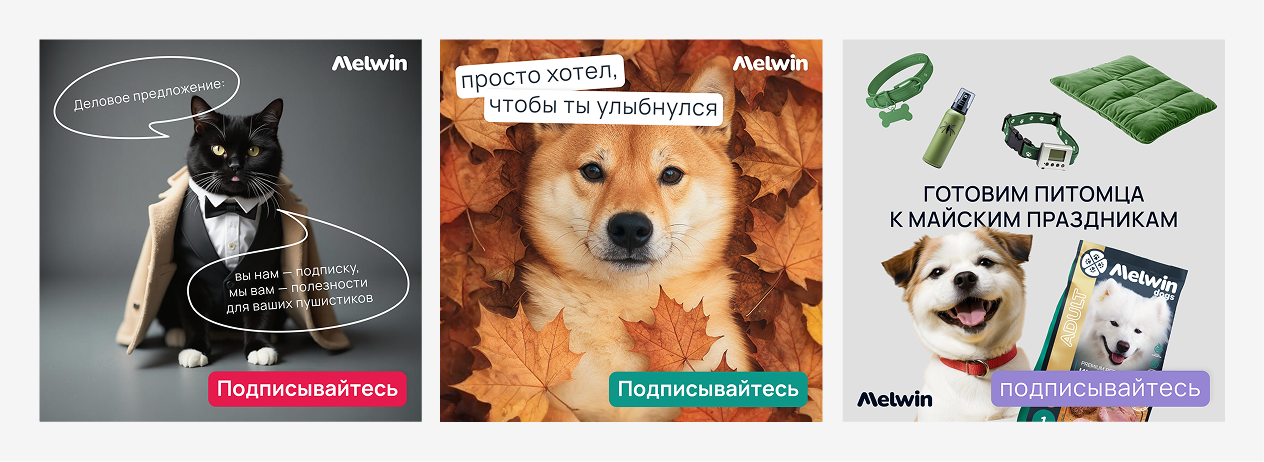 Регулярный комьюнити-менеджмент — наш способ быть рядом. Отвечаем на комментарии и стараемся быть частью повседневной жизни подписчиков. Показываем — в соцсетях Melwin всегда найдётся важное, полезное и просто приятное для тех, кто любит своих питомцев.