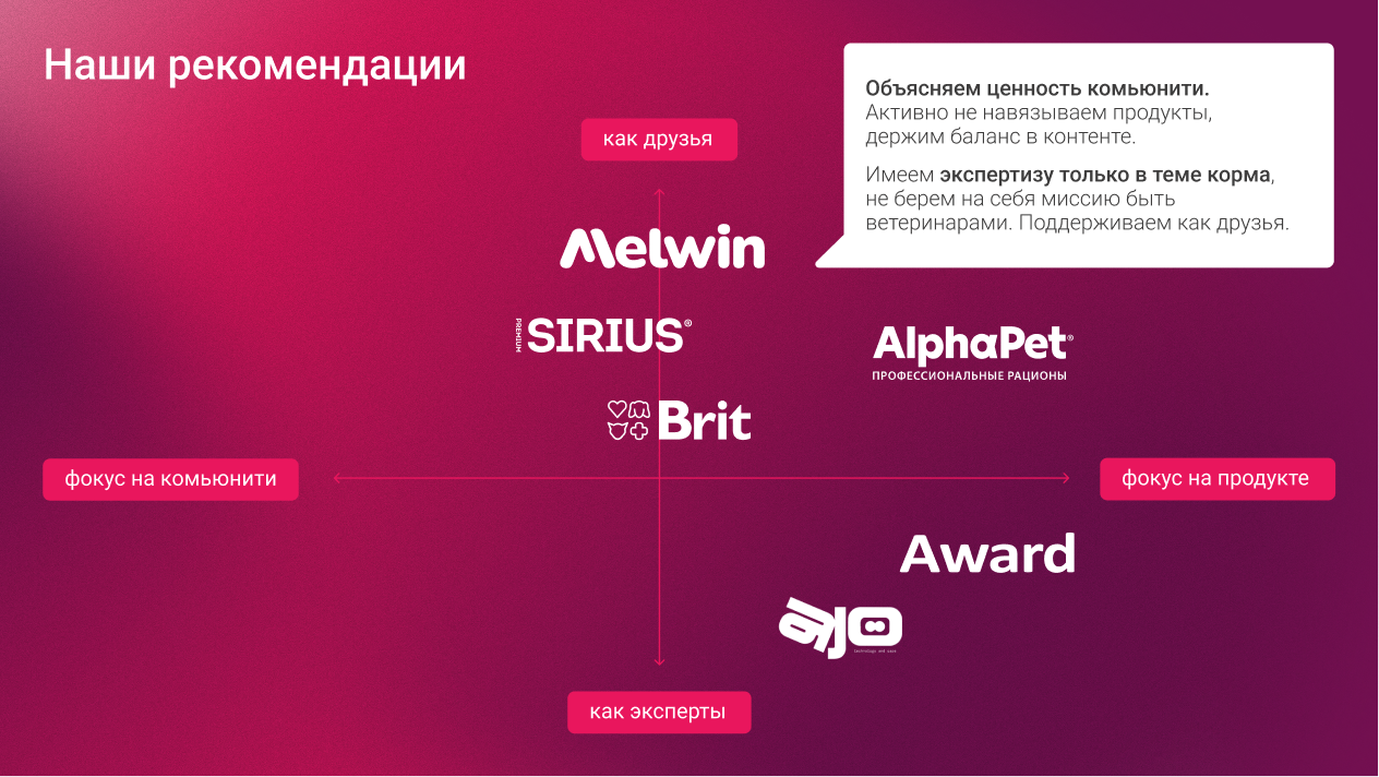 В рамках стратегии разработали Tone of Voice бренда и расширили рубрикатор. Теперь бренд говорит на языке тех, кто каждый день гладит своего кота или выводит собаку на прогулку. Охваты и вовлеченность выросли, особенно в конкурсных активностях.