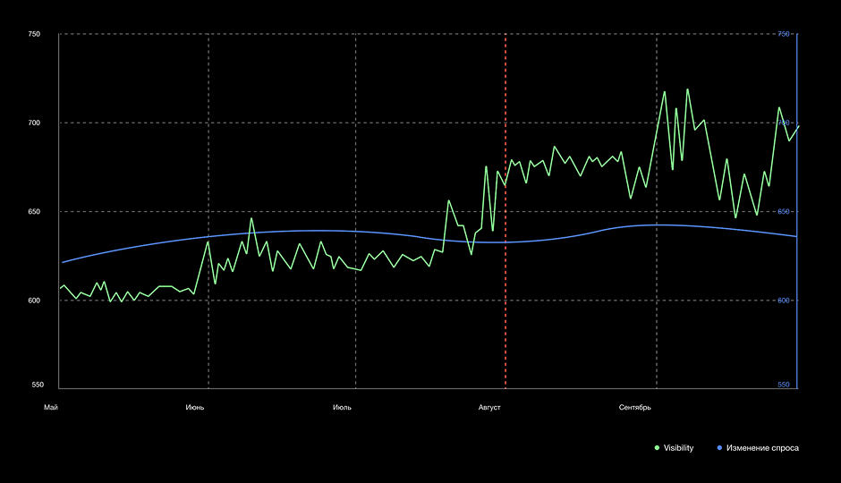 Из графиков видно, что в вертикали есть приложения с более высоким visibility, а значит у «Купибилет» есть потенциал для роста — за счёт повышения видимости можно значительно нарастить органические установки.