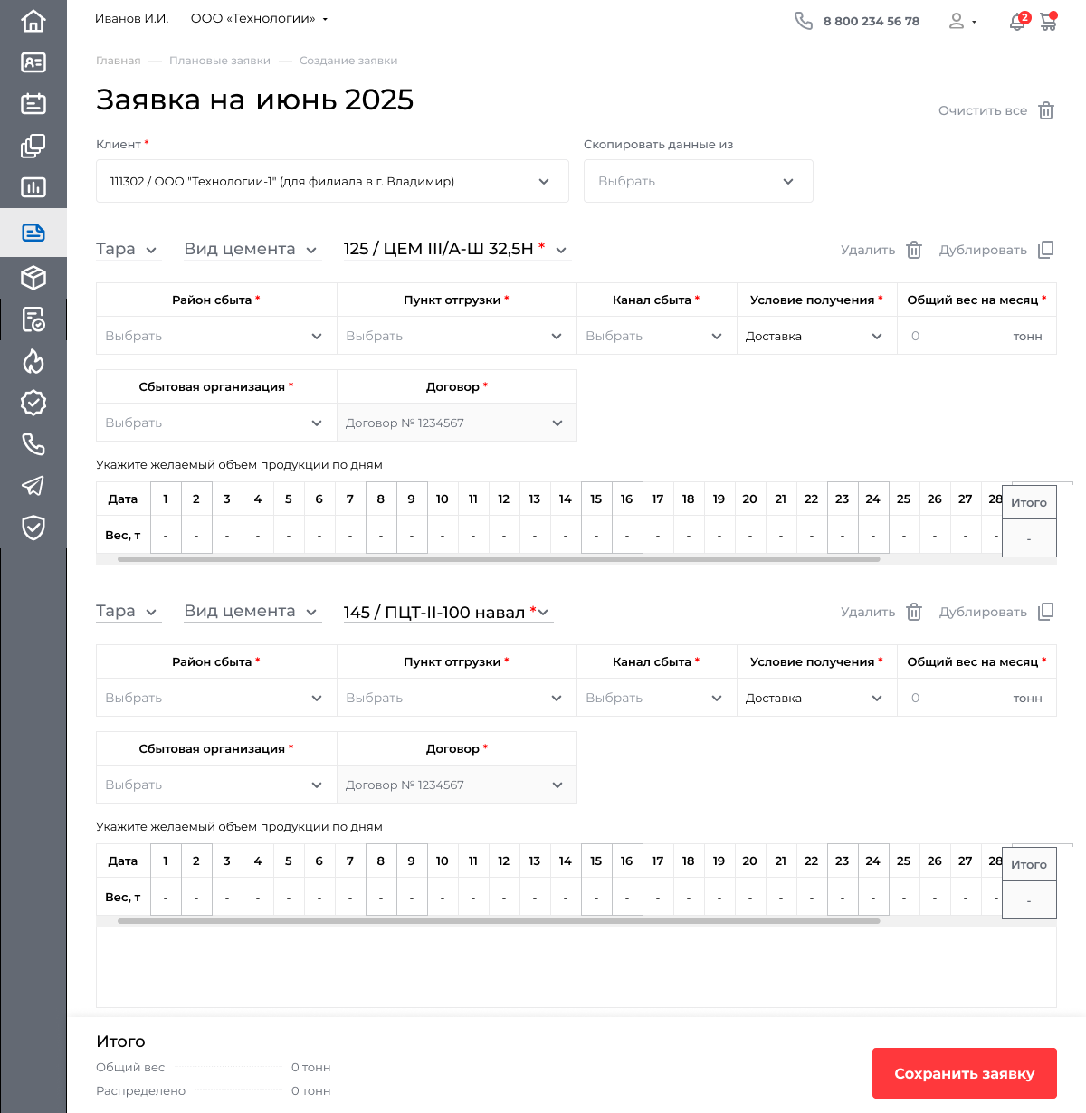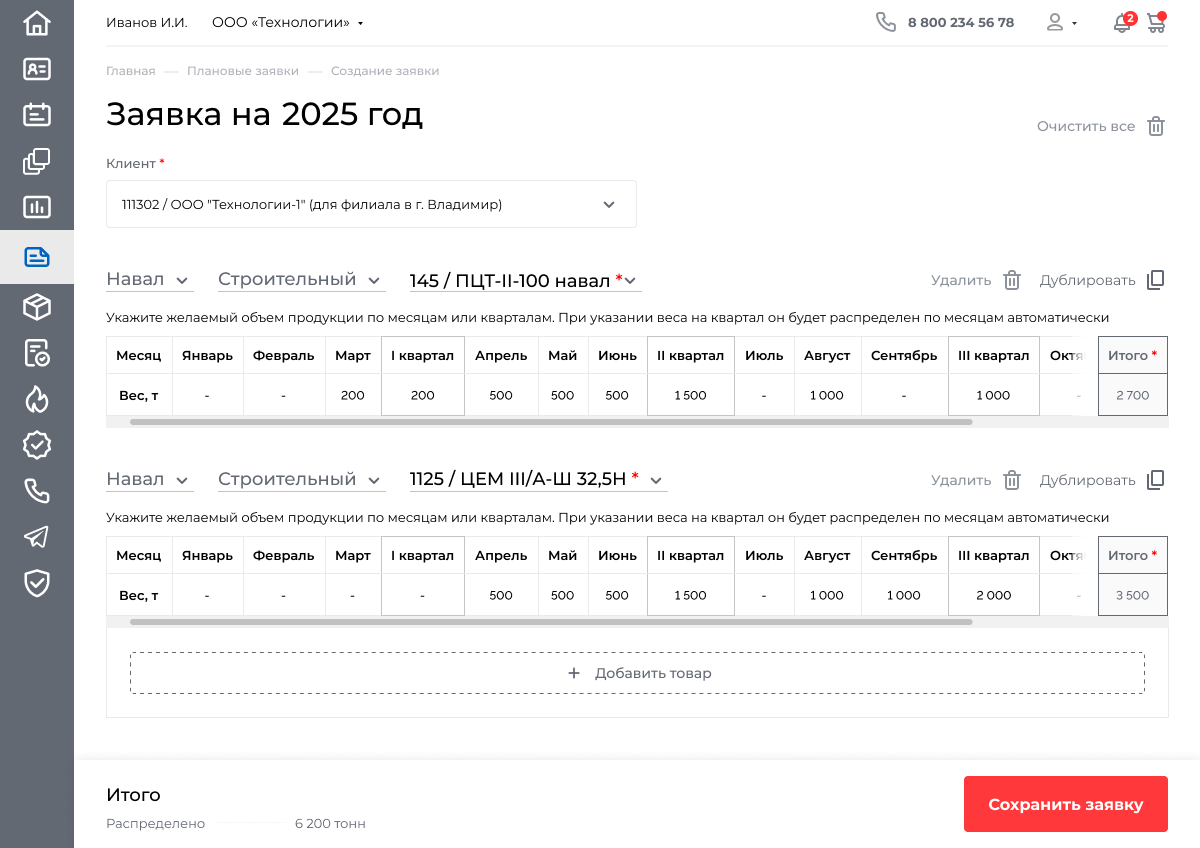 Если клиенту из месяца в месяц нужен сопоставимый объем, он может скопировать предыдущую заявку и внести минимальные изменения, что позволяет ускорить работу менеджера.