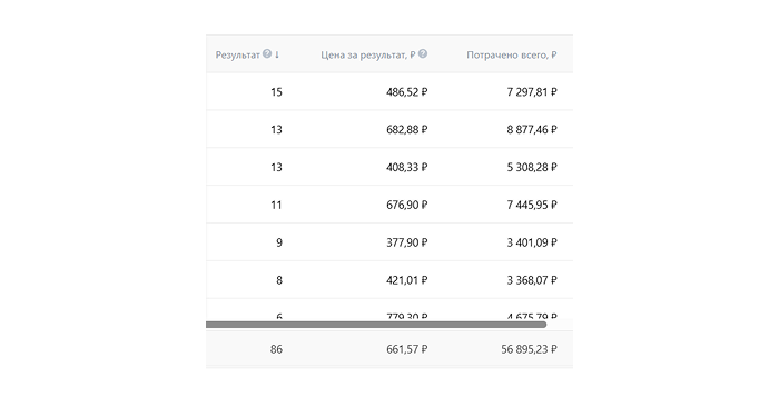 Значение Потрачено 56 895 рублей Показы 317 227 Клики 1 088 Стоимость клика (CPC) 52,29 рубля Количество лидов 86 Цена лида (CPL) 661 рубльВажно: Цена лида 661 рубль при KPI до 800 рублей — отличный результат для узкой ниши в регионе!