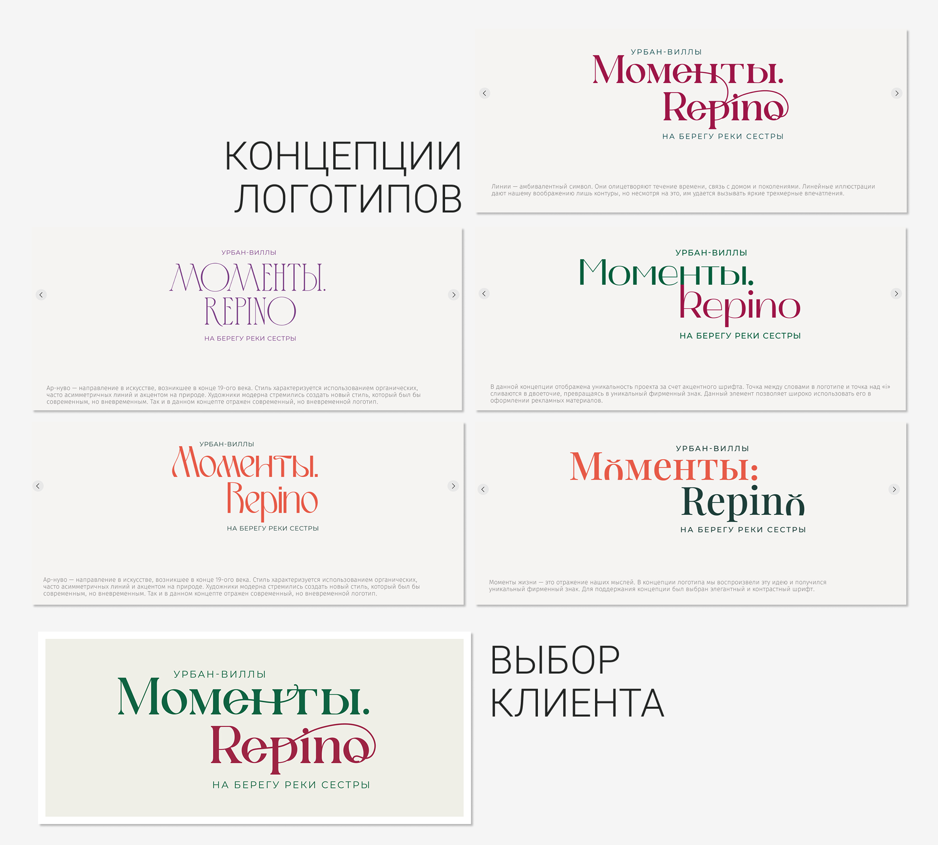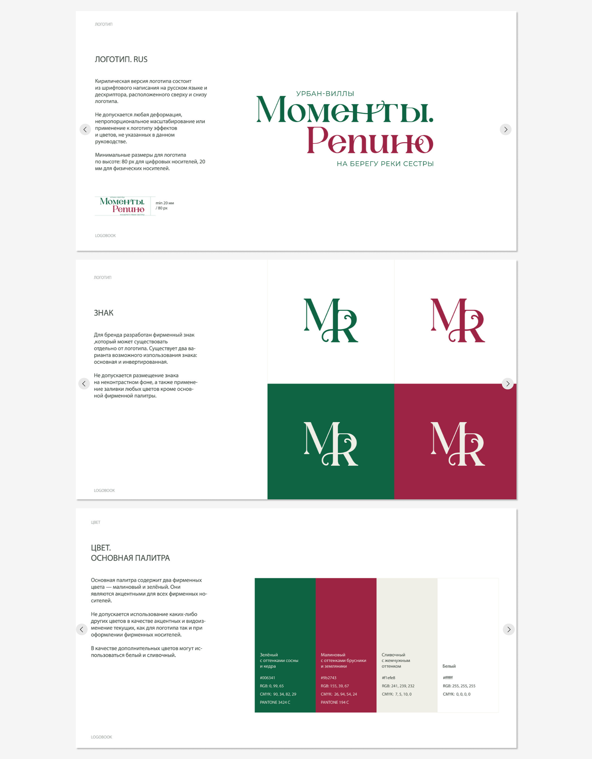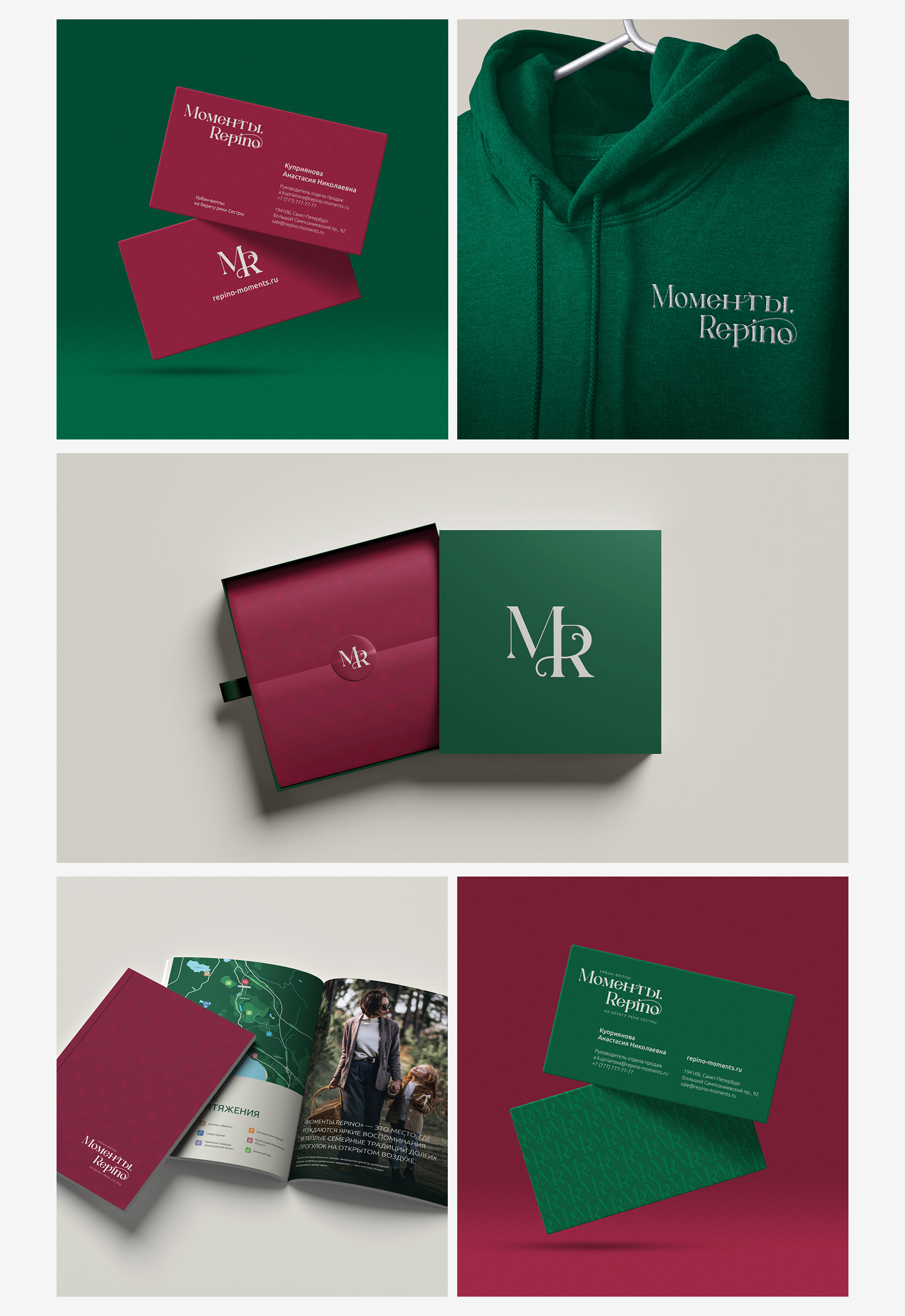 В цветовой гамме преобладают оттенки хвойного леса и ягод как отражение ценностей бренда. «Моменты. Repino» находятся рядом с природными заказниками Курортного района Санкт-Петербурга.