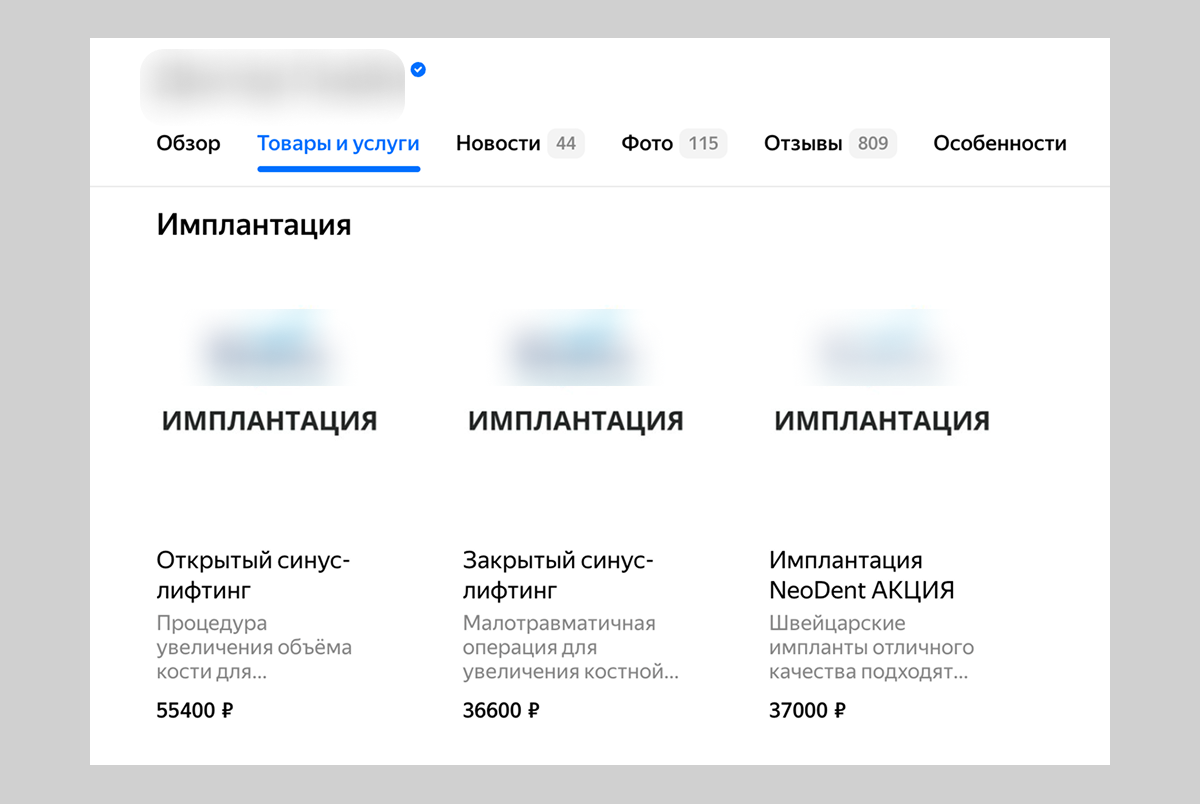 Блок «Товары и услуги» не соотносился с тем, как пациенты на практике формулируют запросы, а прайс-листов не было вовсе. Как следствие — карточки не привлекали пользователей, которые ищут стоматологию по услугам, и проигрывали соседним клиникам в локальной выдаче.