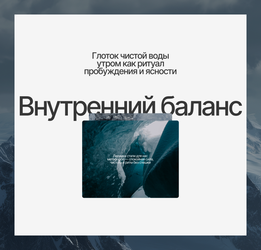 Утро — это личное время, и многие наполняют его любимыми ритуалами, которые дают энергию и спокойствие. Именно так мы и показали философию бренда: «Глоток чистой воды утром как ритуал пробуждения и восстановления».