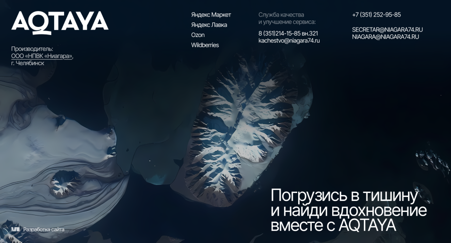 В портфеле ООО «НВК «Ниагара» более десяти брендов, от питьевой воды до энергетиков. А недавно появился новый бренд воды — AQTAYA, и Надежда, бренд-менеджер компании, обратилась к нам за разработкой имиджевого сайта.