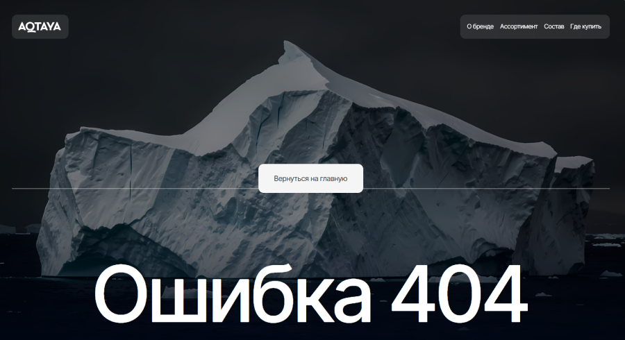 Страница 404 также сохраняет ассоциации с глубиной и чистотой воды. В ней продумали пользовательский опыт. Человек может вернуться на главную страницу несколькими способами: через кнопку, логотип или меню.