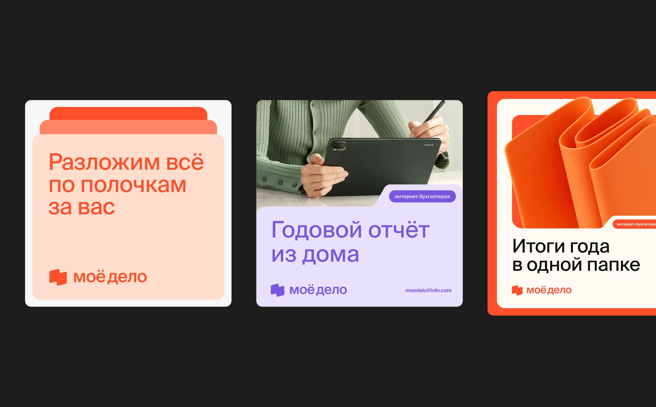В случае с «Моё дело» ключевым стало не создание “нового образа”, а поиск точного визуального эквивалента существующей идеи — порядка, структуры и контроля. Такой подход позволяет не терять накопленный бренд-капитал и при этом двигаться вперёд вместе с продуктом.