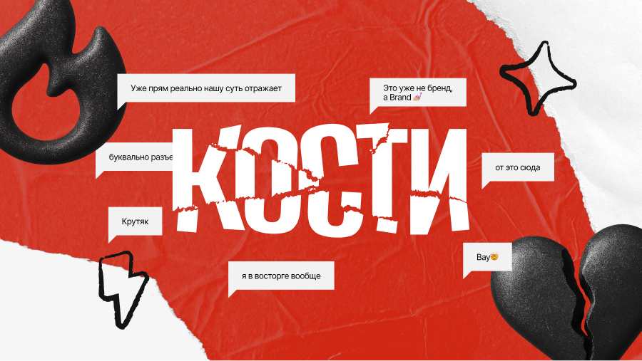 После разработки логобука бренд «Кости» вернулся с новым запросом: «Мы попробовали обновить визуал, но логотип все равно существует изолированно, нам непонятно, как интегрировать его в стиль».