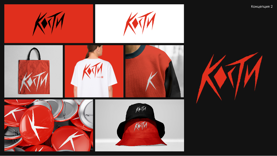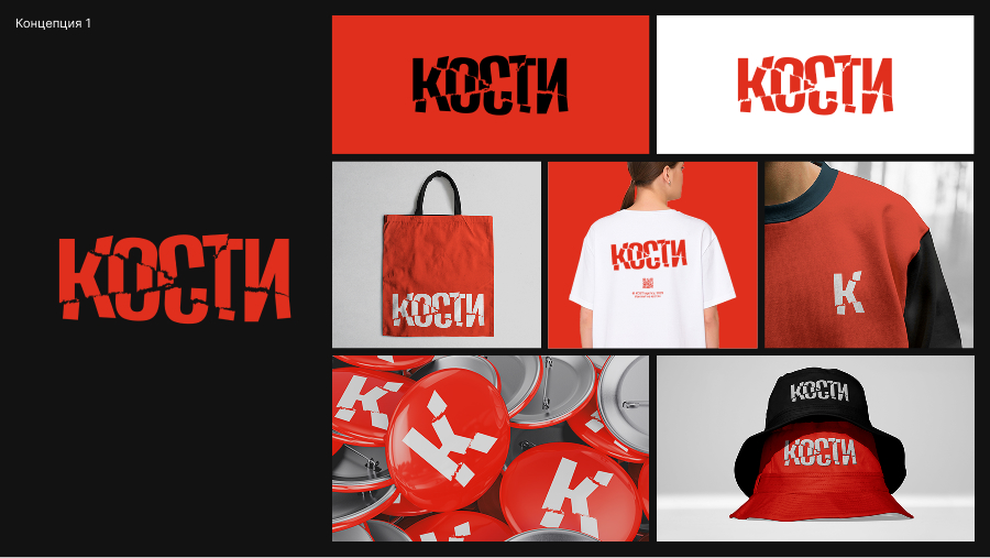 «Кости» — смелые и активные ребята, поэтому все в логотипе сигнализирует об этом, особенно активный красный цвет и бросающаяся в глаза идея. Логотип точно передает суть бренда.