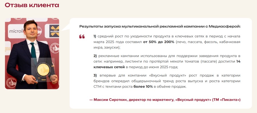 Итог: бренд «Пиканта» впервые в своей истории вошел в топ-10 «Любимых брендов россиян», заняв 6-е место. Маркетинг, основанный на глубокой аналитике и выверенном Customer Journey, доказал, что даже на консервативном рынке FMCG можно совершить феноменальный прорыв.
